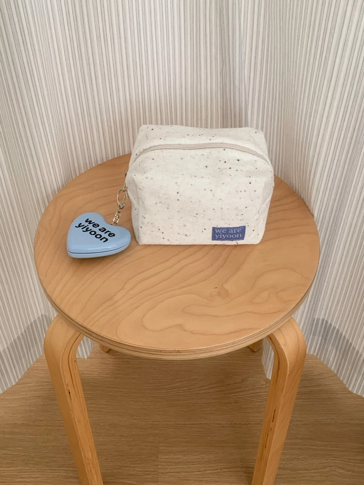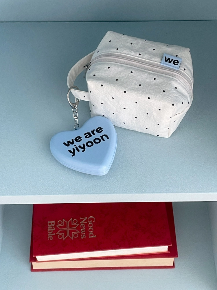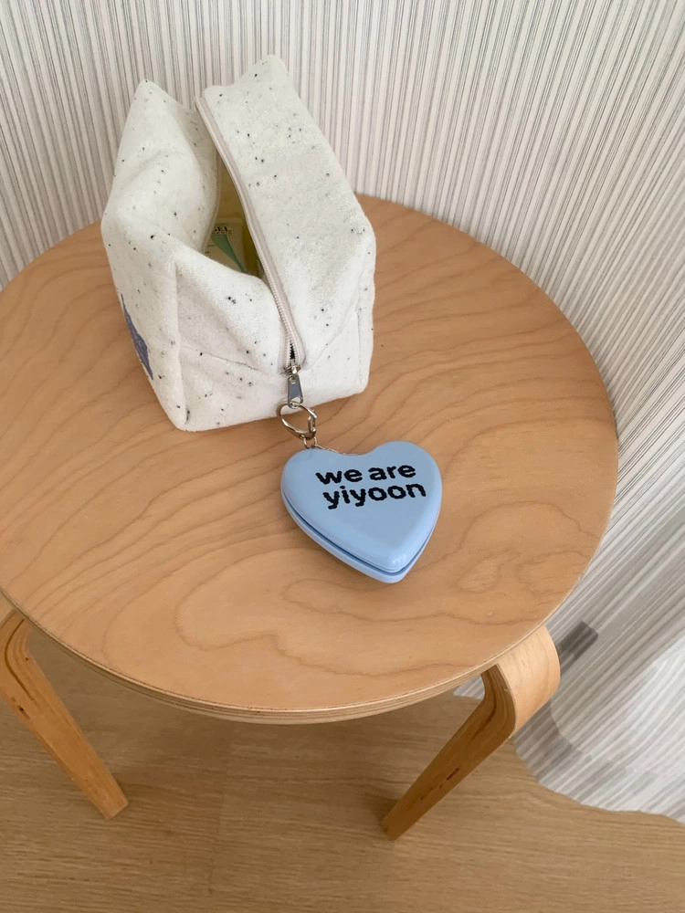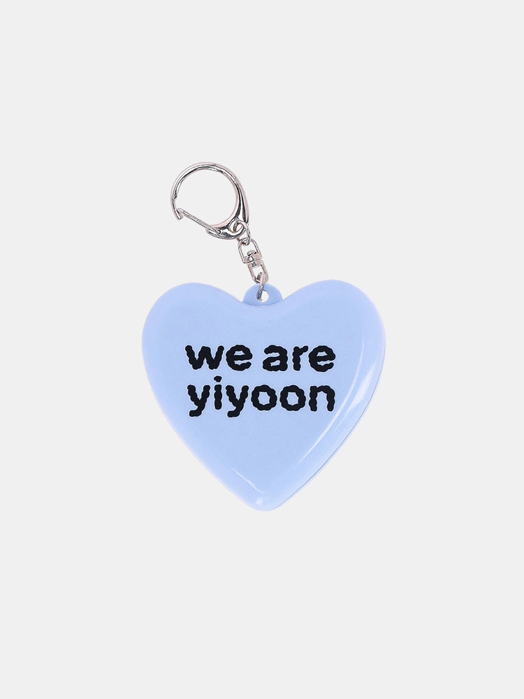 - 위아이윤 로고가 인쇄된 하트 모양의 미러 앤 콤브 키링입니다.